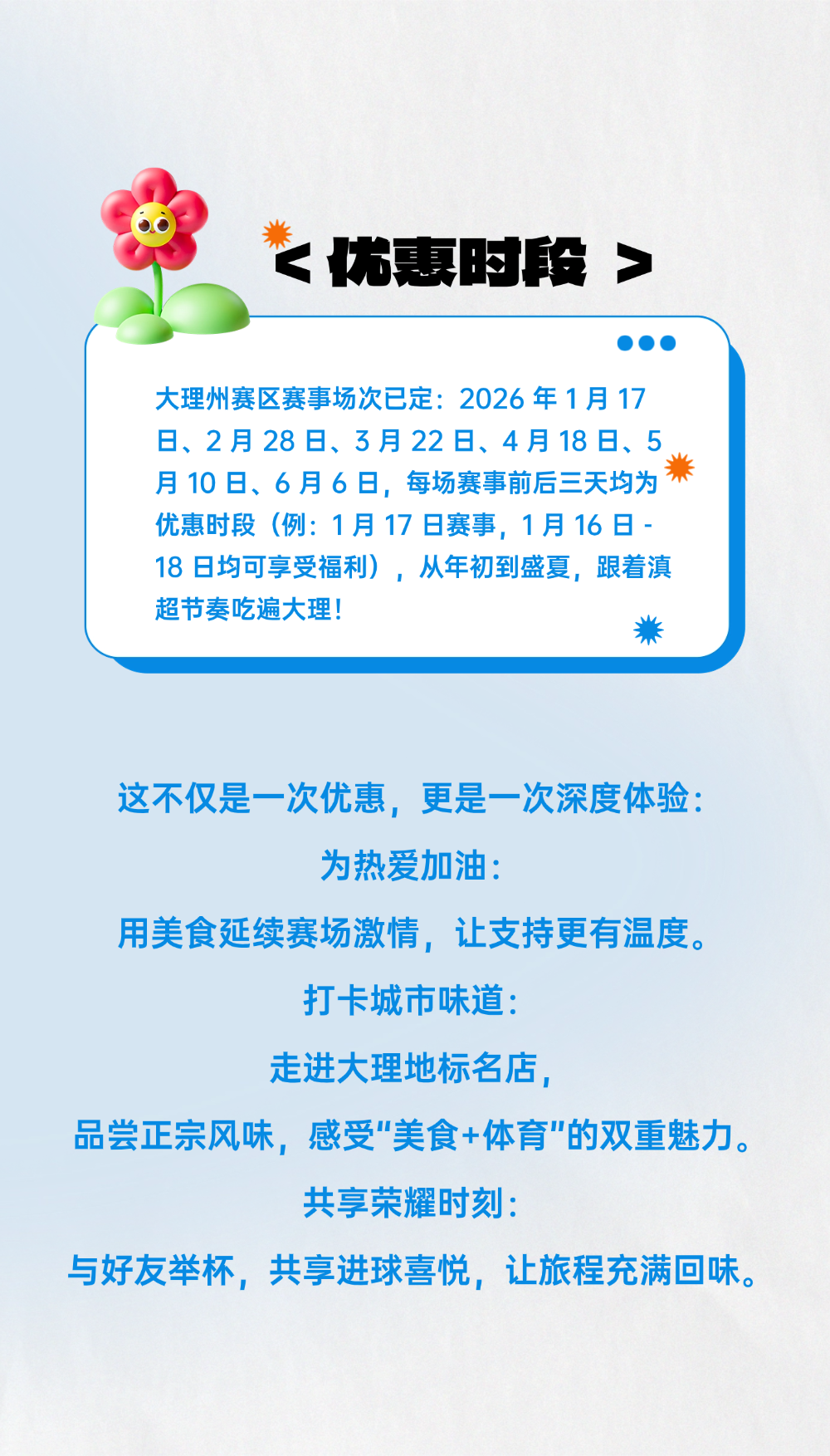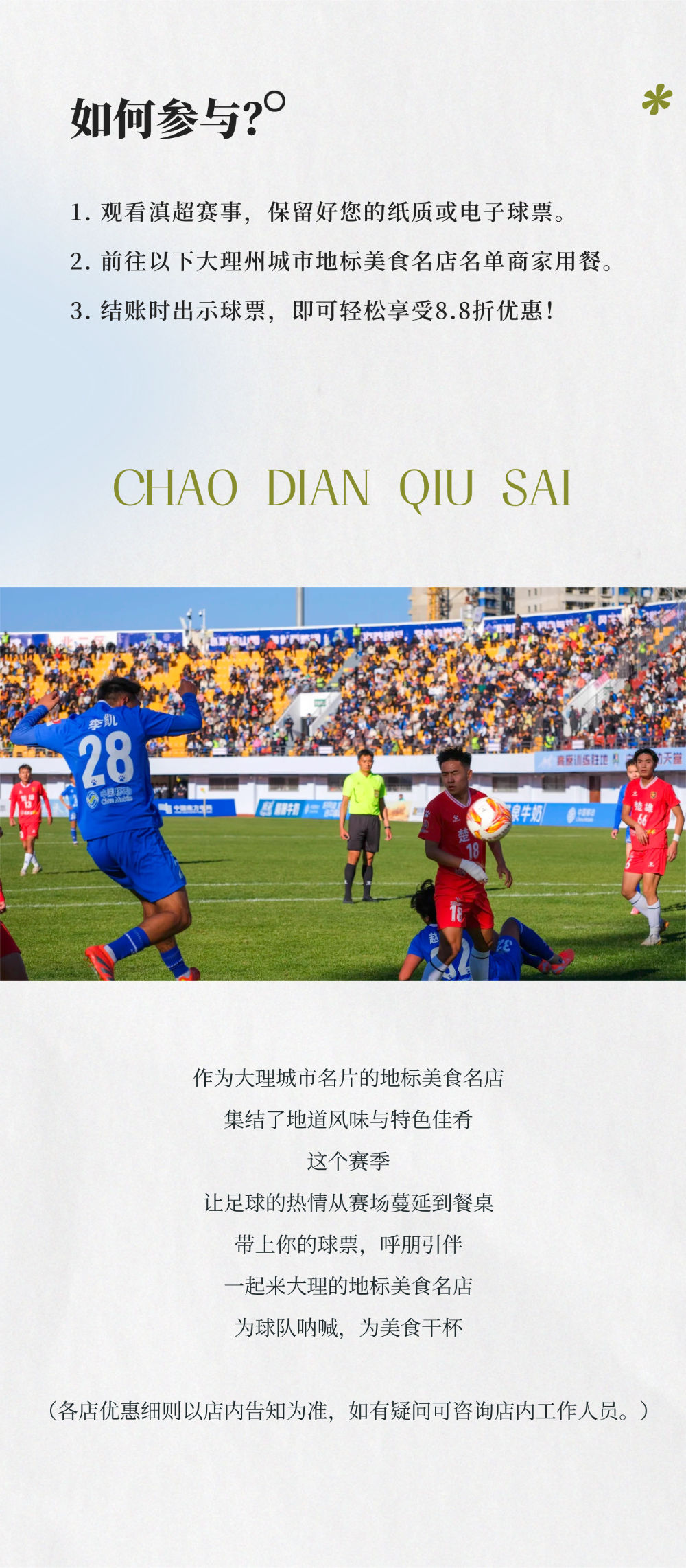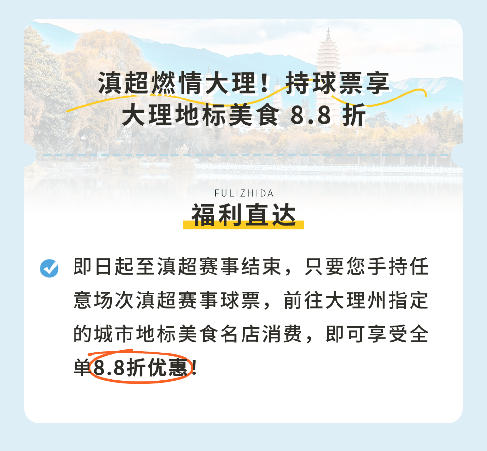滇超燃情大理!持球票享大理地标美食 8.8 折