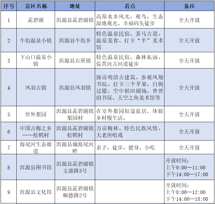 ↓洱源县开放式免门票景区景点名单↓