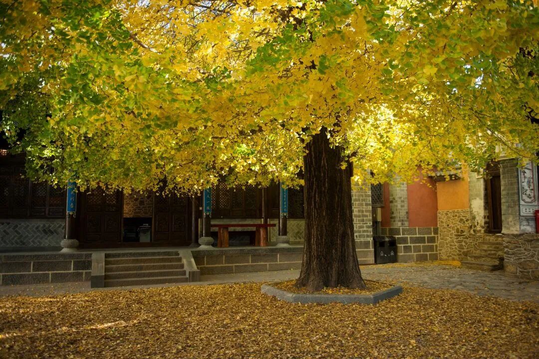 院内最引人注目的,是那棵枝繁叶茂的古银杏树。树龄超300年,树干粗壮挺拔,枝叶舒展如盖,春夏时节翠绿欲滴,生机勃勃。阳光透过树叶缝隙洒下,在地面投下斑驳光影,微风拂过,枝叶轻晃,沙沙作响,仿佛在诉说百年故事。站在树下,抬眼便是绿意,呼吸间尽是清新,内心的浮躁悄然沉淀。
