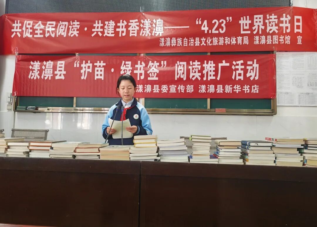 在第31个世界读书日来临之际,漾濞县文化旅游和体育局、县教育局联合主办,县图书馆与苍山西镇中学共同承办的“非遗遇上阅读,书香满校园”主题活动在苍山西镇中学举行,以“阅读+非遗”的创新形式为校园增添浓浓书香。