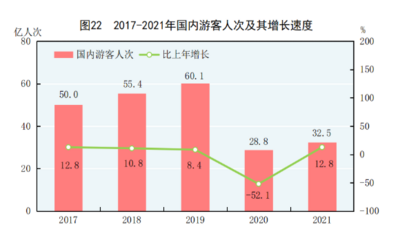 全年国内游客32.5亿人次,比上年增长12.8%。